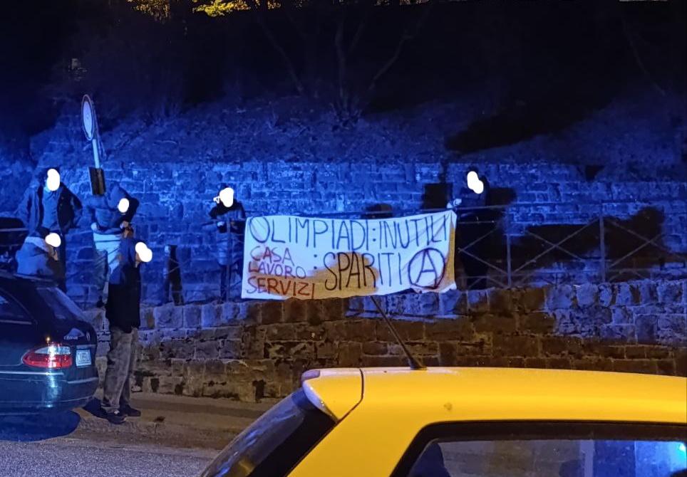 Oggi abbiamo deciso di festeggiare a modo nostro l’arrivo della fiaccola olimpica a Trieste. Abbiamo quindi affisso due striscioni lungo il percorso, il primo in via Molino a vento “Olimpiadi inutili: casa lavoro servizi spariti” e il secondo in via San Marco sulla pam “Olimpiadi insostenibili devastano il territorio” entrambi con la A cerchiata. Un piccolo gesto per svelare la vera faccia di questo mega evento che ha molto poco a fare con lo sport e moltissimo invece con i profitti delle multinazionali e mega aziende (Coca cola, Eni, Leonardo in primis) compartecipi della distruzione del pianeta e delle guerre che insanguinano tante parti del mondo. Le Olimpiadi significano anche una devastazione dei territori – in questo caso montani – che le ospitano, con costruzione di mega opere faraoniche e inutili che poi restano come cattedrali nel deserto. Tutto questo mentre i soldi per la scuola, i servizi sociali e la sanità sono sempre meno. Non dimentichiamo poi la presenza di stati genocidi come Israele (ma non solo) che approfittano di queste occasioni per rifarsi una facciata pulita. Noi supportiamo invece lo sport popolare, che si costruisce dal basso ogni giorno nei quartieri delle nostre città.