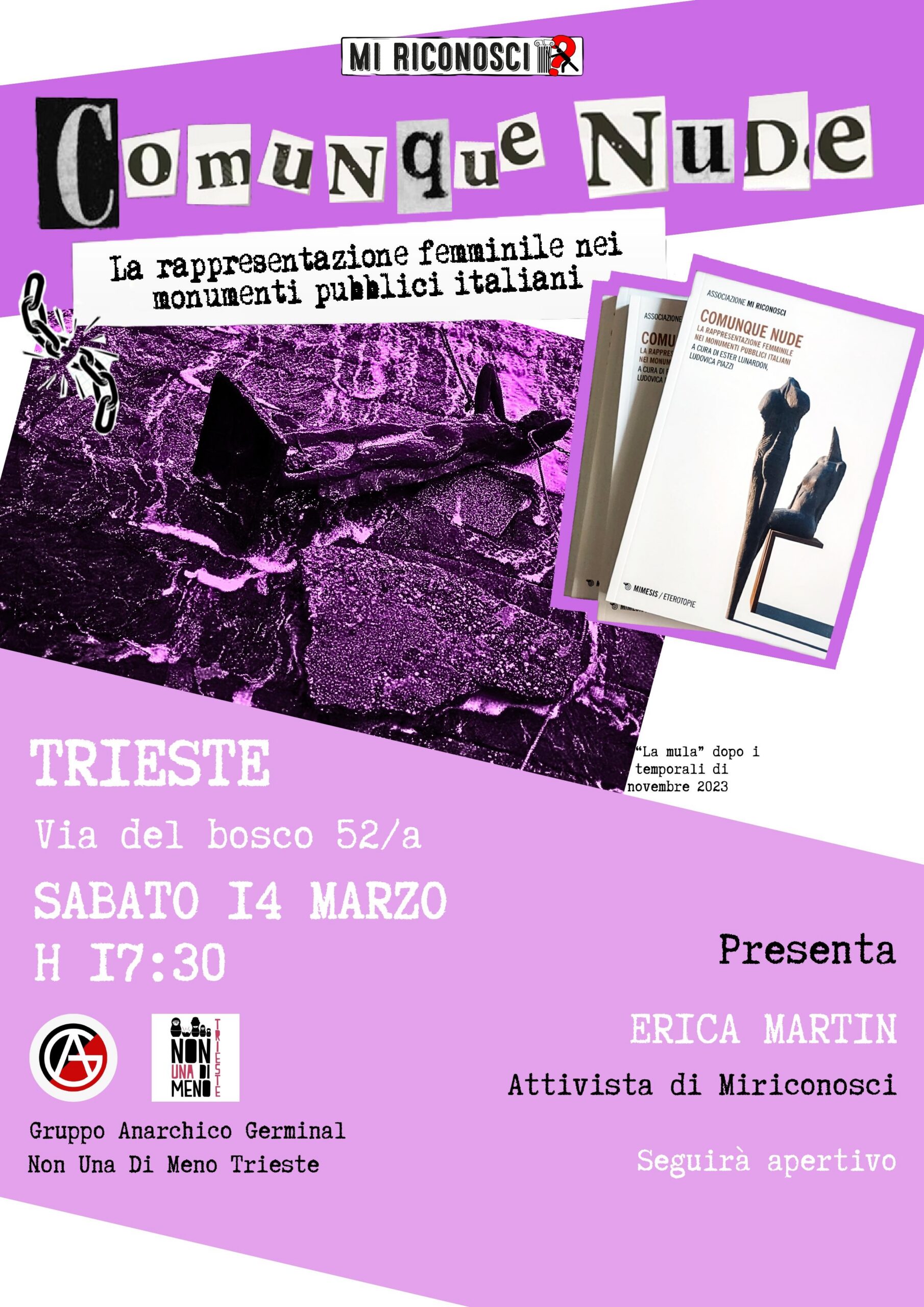 Affronta polemicamente già dal titolo la questione delle presenze femminili nei monumenti pubblici in Italia il volume Comunque nude. La rappresentazione femminile nei monumenti pubblici italiani, a cura di Ludovica Piazzi ed Ester Lunardon.